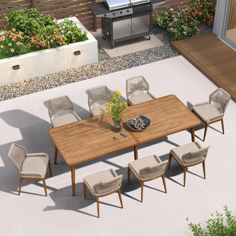 Check out this amazing Rectangular 8 – Person 146.86″ Long Aluminum Dining Set with Cushions as your outdoor dining option.